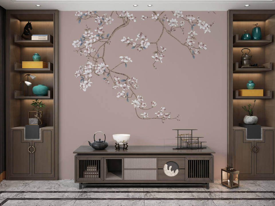 Name:Silk Print Magnolia Design Embroidery Wallpaper