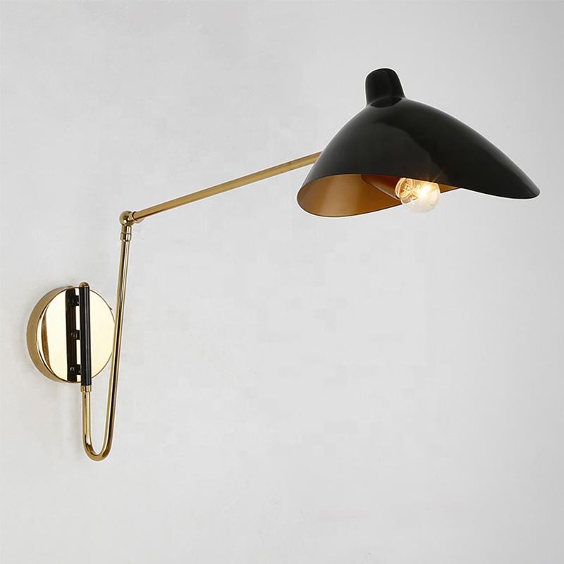 Zhongshan Simig Lighting Vintage Antique Swing Arm Black Metal Shade Wall Mounted Lamp for Bedroom