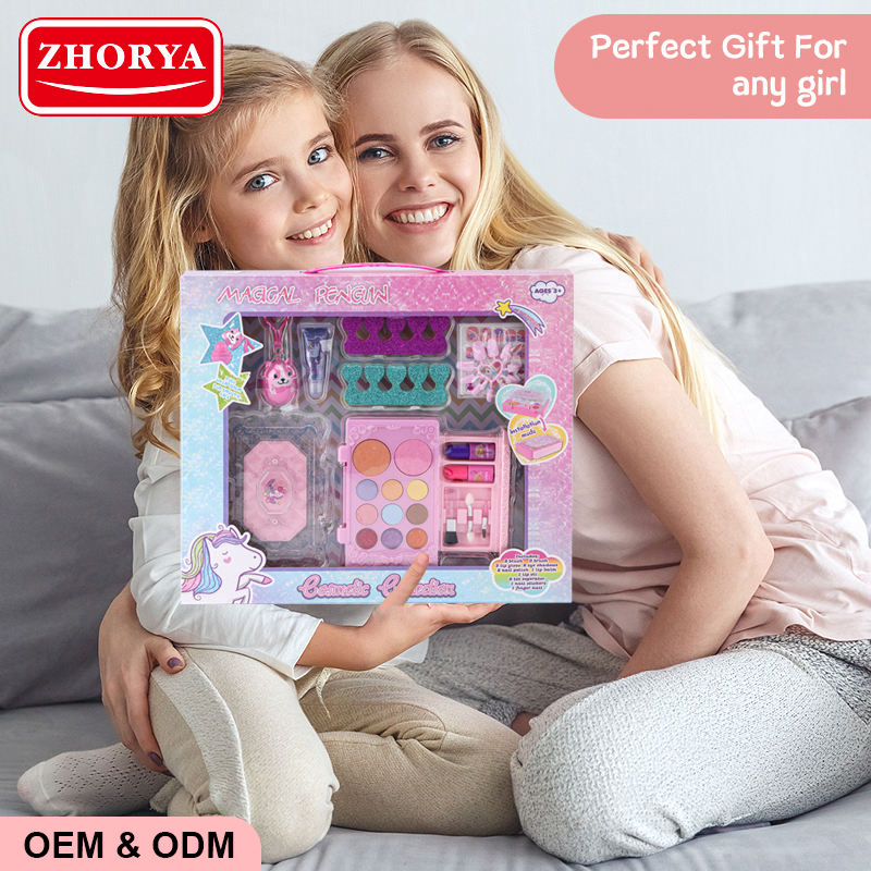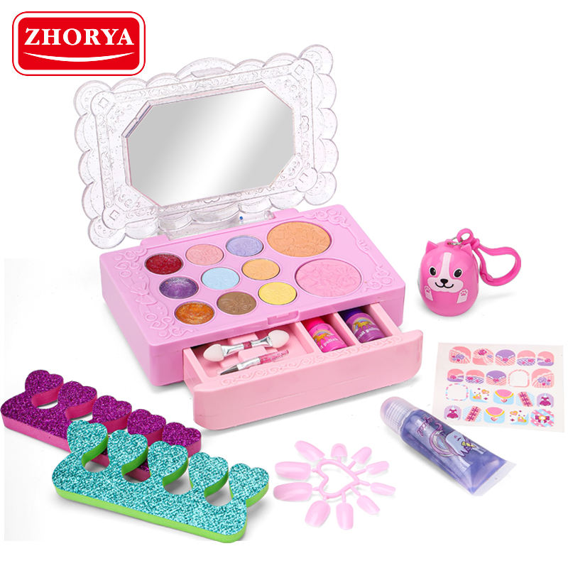 Zhorya set regalo per pennelli da trucco per bambini finti di giocare kit giocattolo cosmetico rosa