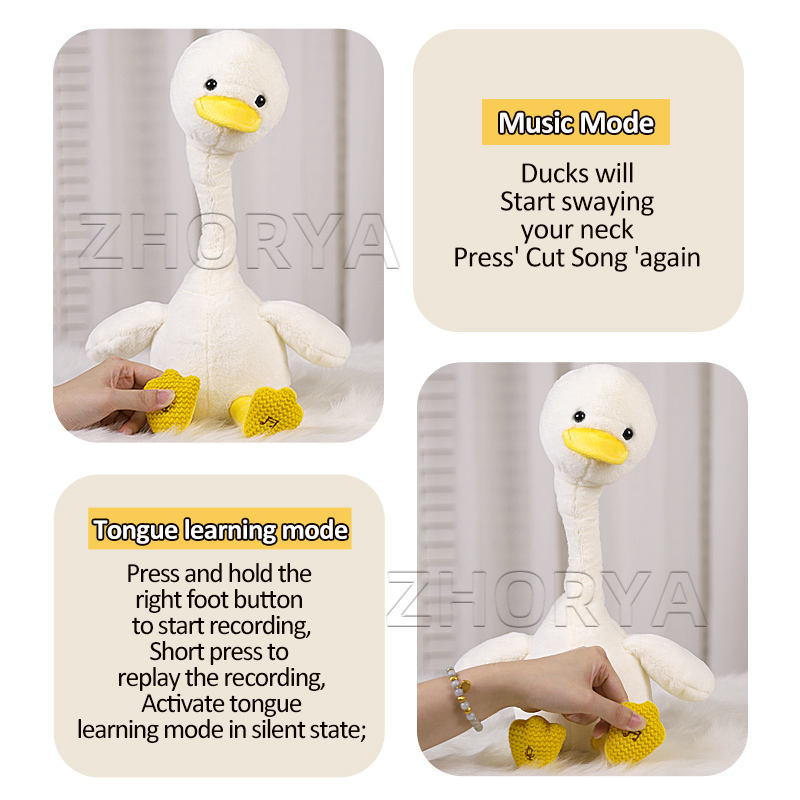 Zhorya simpatici animali di peluche elettronici parlanti peluche ripieni che cantano anatre giocattolo