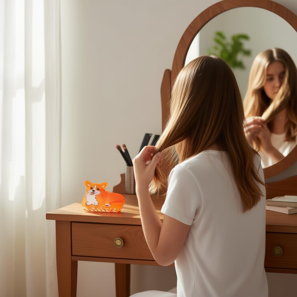 Durable Plastic Material Zi Corgi Dog Hair Clip 8.5Cm Orange Cartoon Design For Women Girls