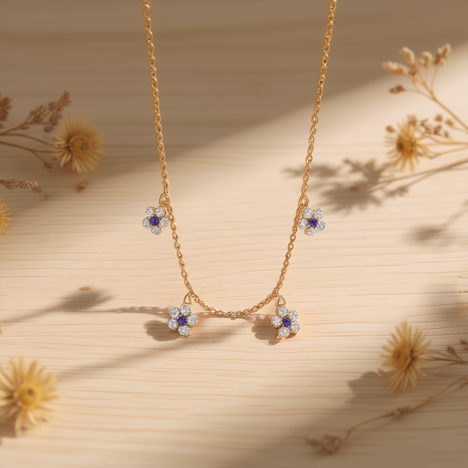 Collana con Ciondolo a Fiore con Diamanti Placcata in Oro, Stile Carino per Uso Quotidiano Femminile