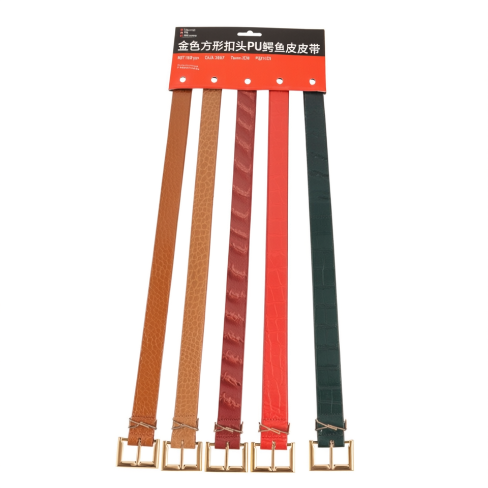 Zi Golden Square Buckle 3Cm Pu Crocodile Leather Belt For Women And Men Casual Style Alloy Buckle