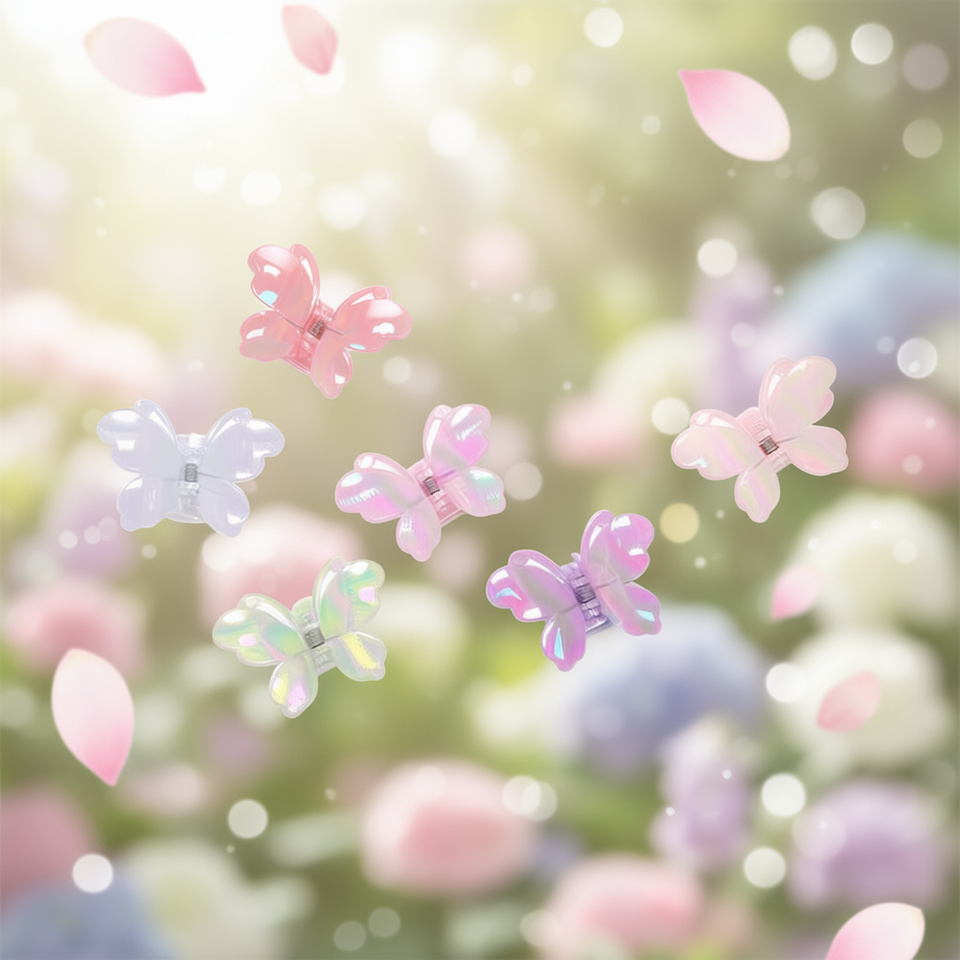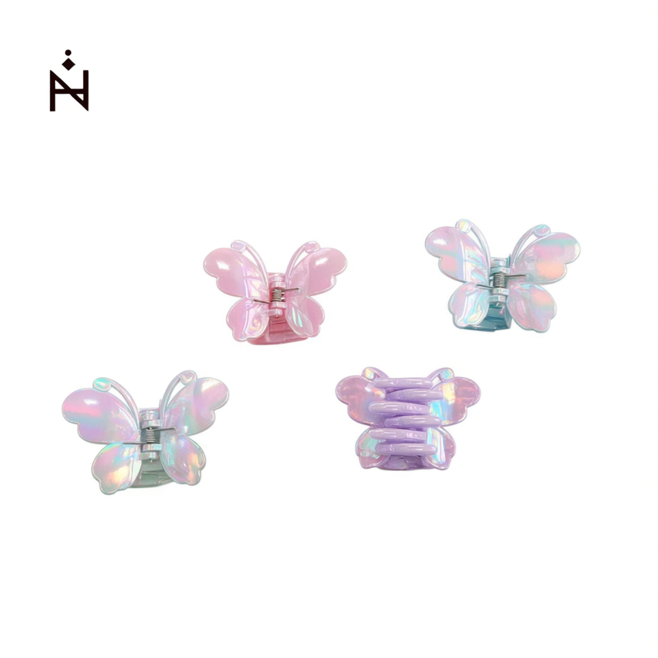 Fermagli per capelli a farfalla ZiN da 7,5 cm in plastica iridescente, stile dolce, per donne e ragazze
