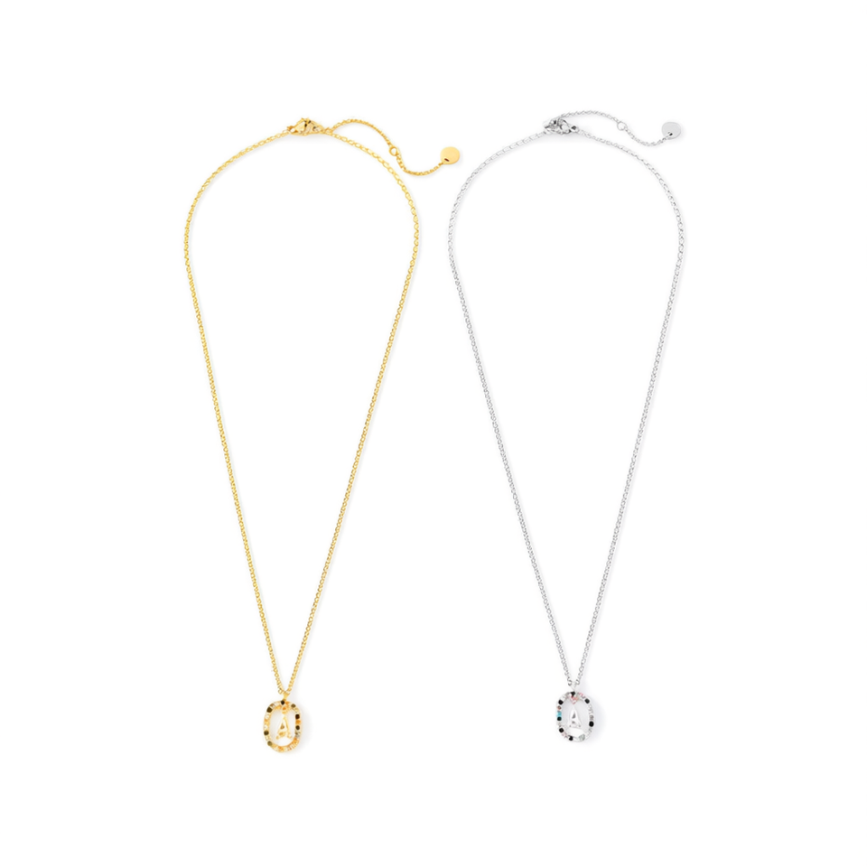 Zieta Pendant Necklace Gold Silver Acero 45431 Minimalist Charm Letter Crystal Rhinestone Everyday Wear Unisex Fine Jewelry