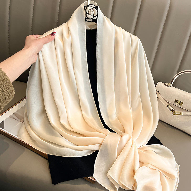 Zifeng OEM Nuova Sciarpa da Donna in Poliestere e Seta, Colore Bianco Tinta Unita, Foulard Semplice, Copricapo Blu, Scialli e Sciarpe da Donna