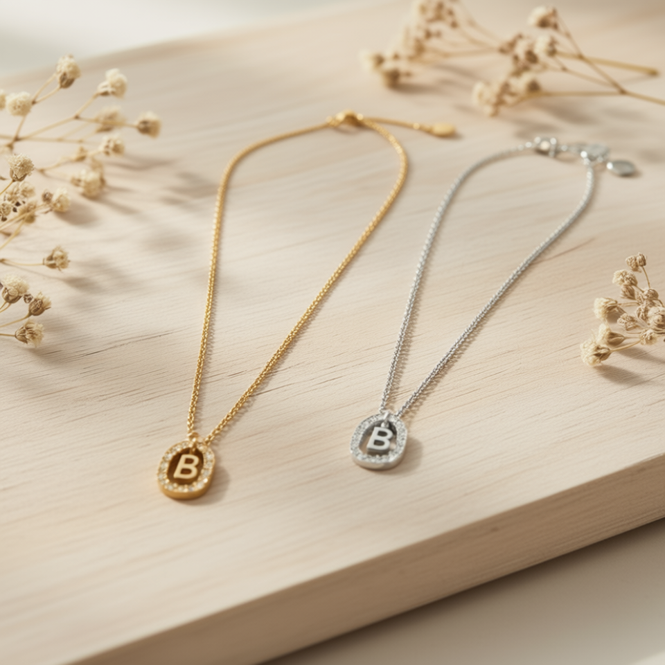Ziina Letter B Pendant Necklace 10x15Cm Stainless Steel Gold Silver Minimalist Everyday Wear