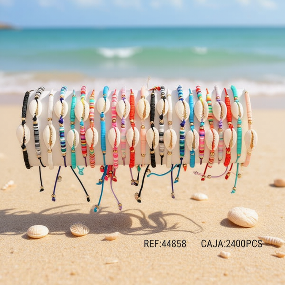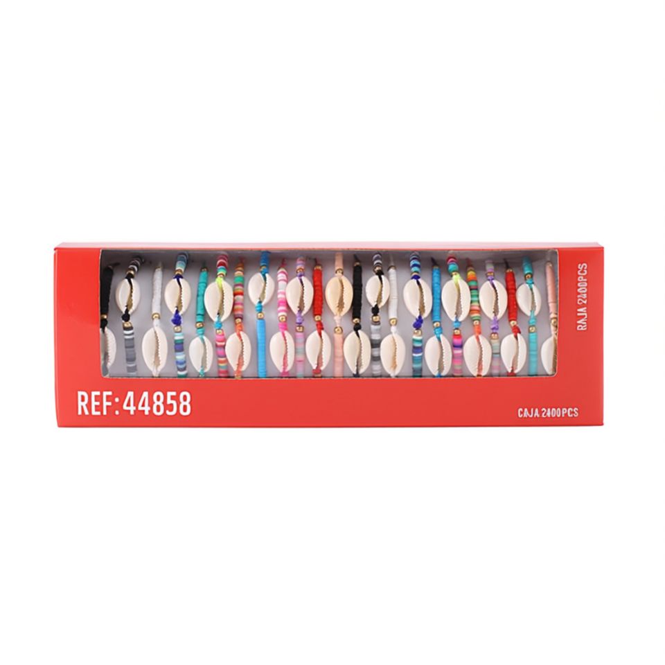 Braccialetti con perline a conchiglia Ziina, colorati e regolabili, gioielli da donna in stile bohémien, 2400 pezzi in scatola, Rif. 44858