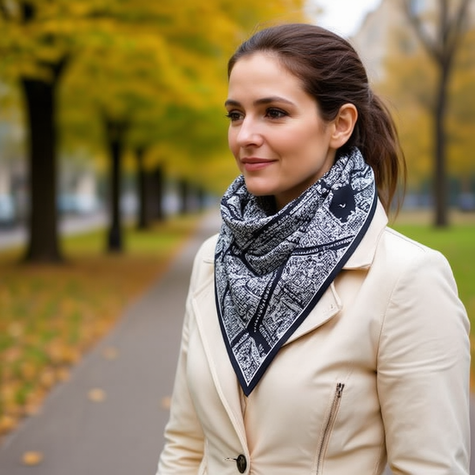Sciarpa triangolare Ziinio 135x60 cm in poliestere stampato e cotone per donna, per tutte le stagioni