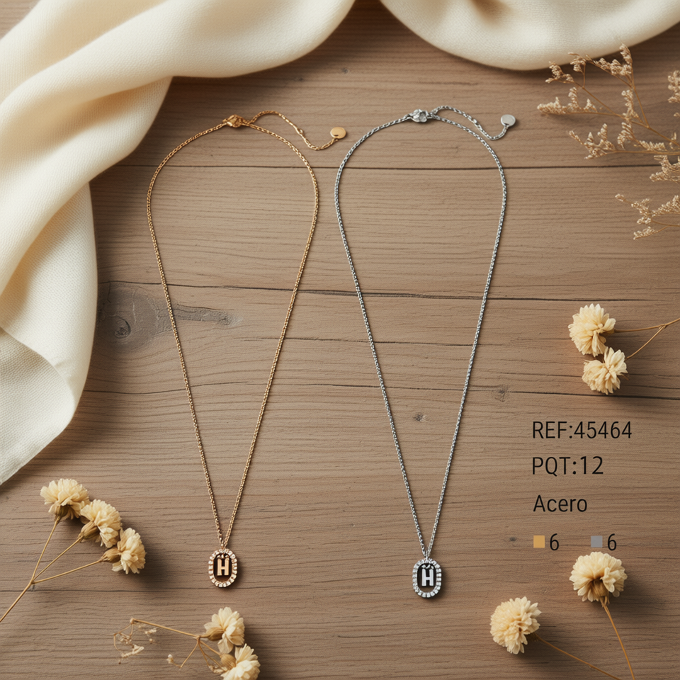Ziinlife Letter H Pendant Necklace Stainless Steel Gold Plated Diamond Accented Fashion Jewelry Unisex Gift