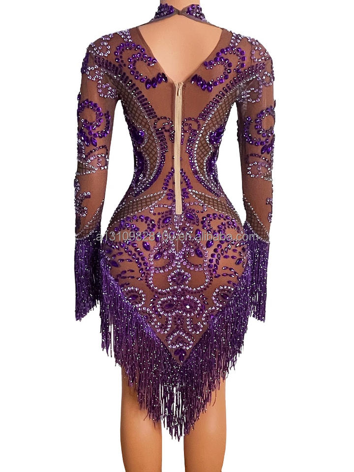 Zimei Long Sleeved One-Piece Short Skirt Wrapped With Rhinestone Tight and Sexy Stage Walk Show Online Celebrity Singer Bar
