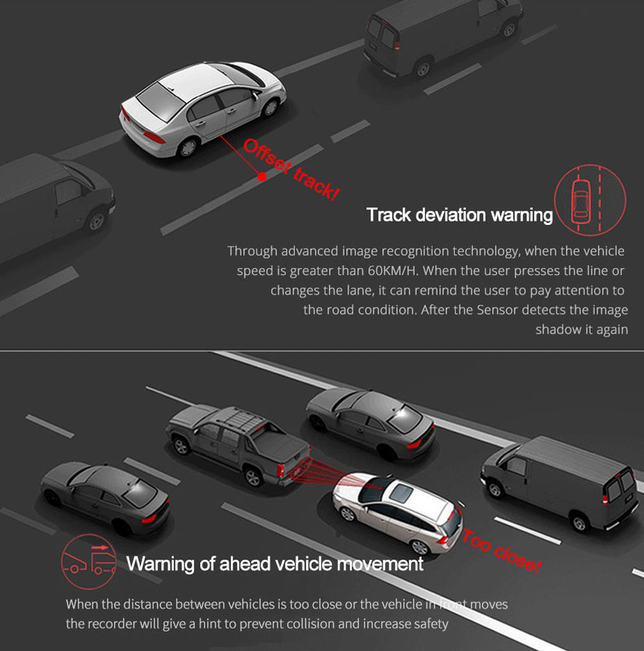 Impermeabile, Visione notturna, WDR, Telecomando, Colore completo, G-sensore, MODALITÀ di parcheggio, Registrazione in Loop, Costruire-in WiFi, Rilevamento del movimento, Controllo App, Costruire-in GPS, Costruire-in GSM, Di emergenza Incidente di Blocco, Andriod OS, SDK, Adas