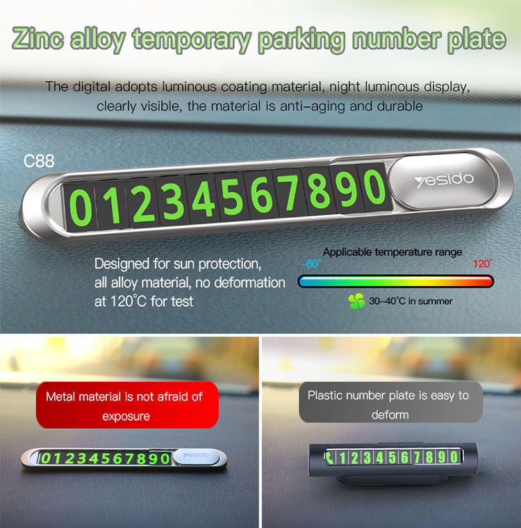 Targa Temporanea per Parcheggio Auto in Lega di Zinco con Numero di Notifica per Telefono Cellulare