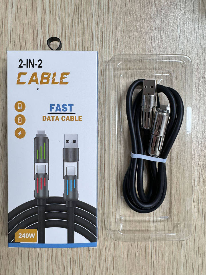 Zinc Alloy Silicone 240W Four-in-One Data Cable Fast Charging 1M 1.5M 2M USB Cable for iPhone for Samsung Printer Computer