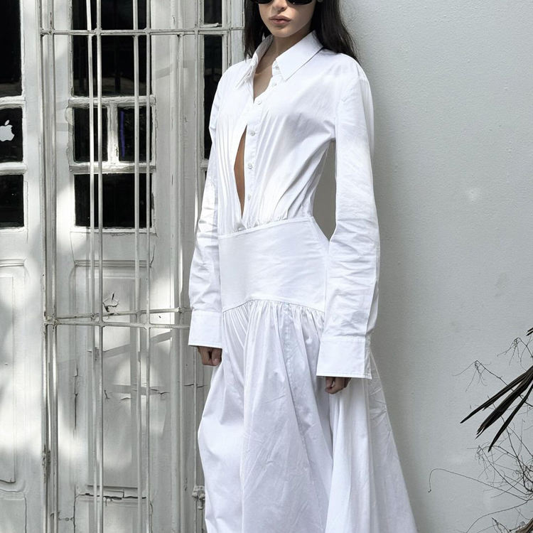 Abito a camicia lunga da donna con bottone a manica lunga in cotone bianco Maxi 2025 estivo da donna