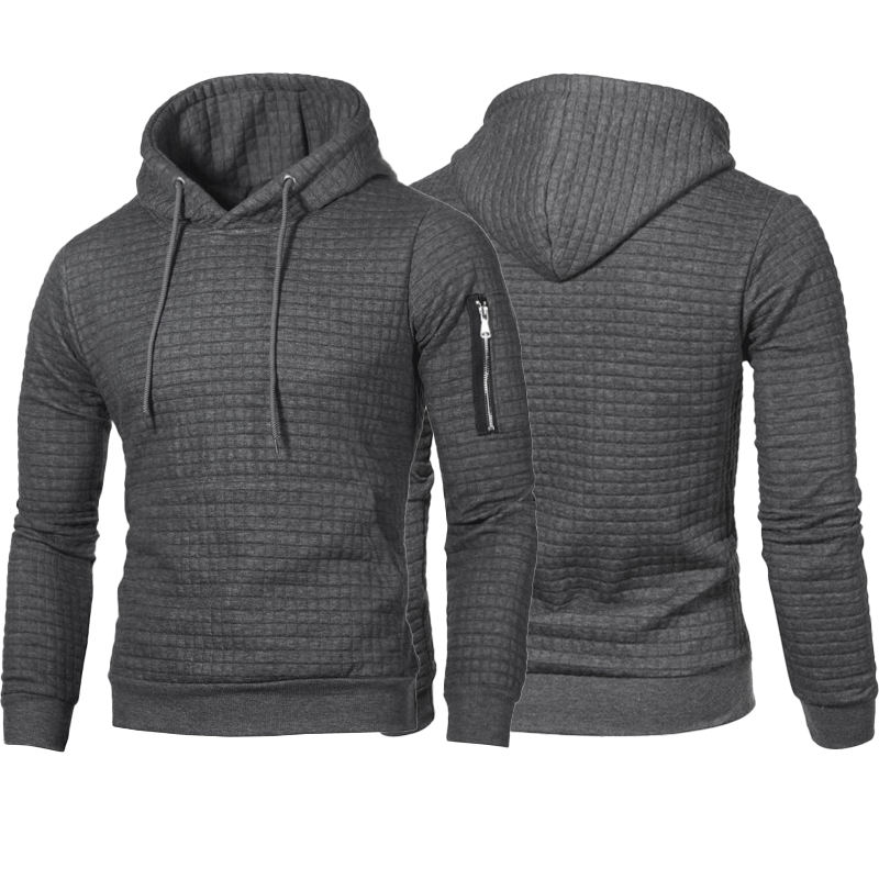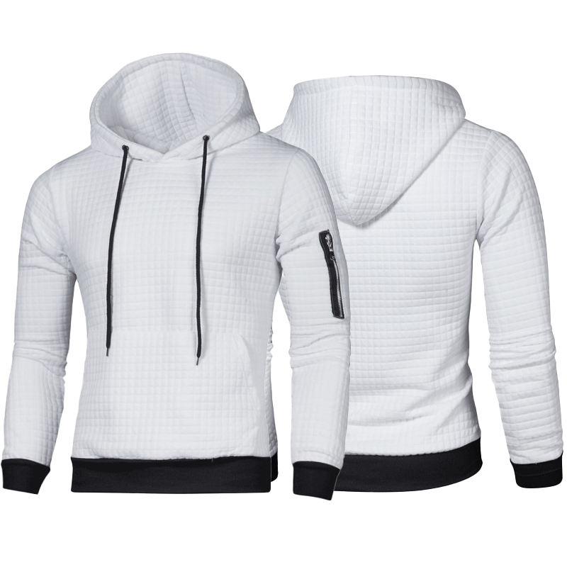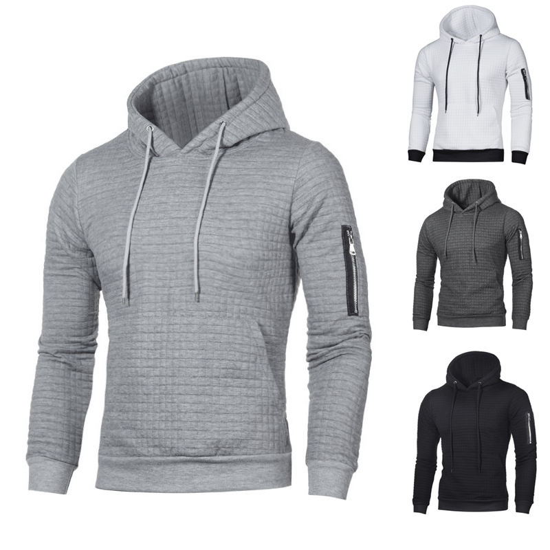 Tasche laterali con cerniera coulisse con cappuccio allenamento muscolare felpe aderenti Plaid Pullover Jacquard trapuntato felpe con cappuccio da palestra da uomo