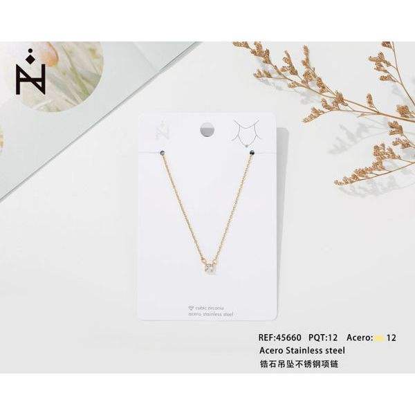 Collana con Zirconi, Ciondolo in Acciaio Inossidabile con Zirconia Cubica, Gioiello con Catena Fine