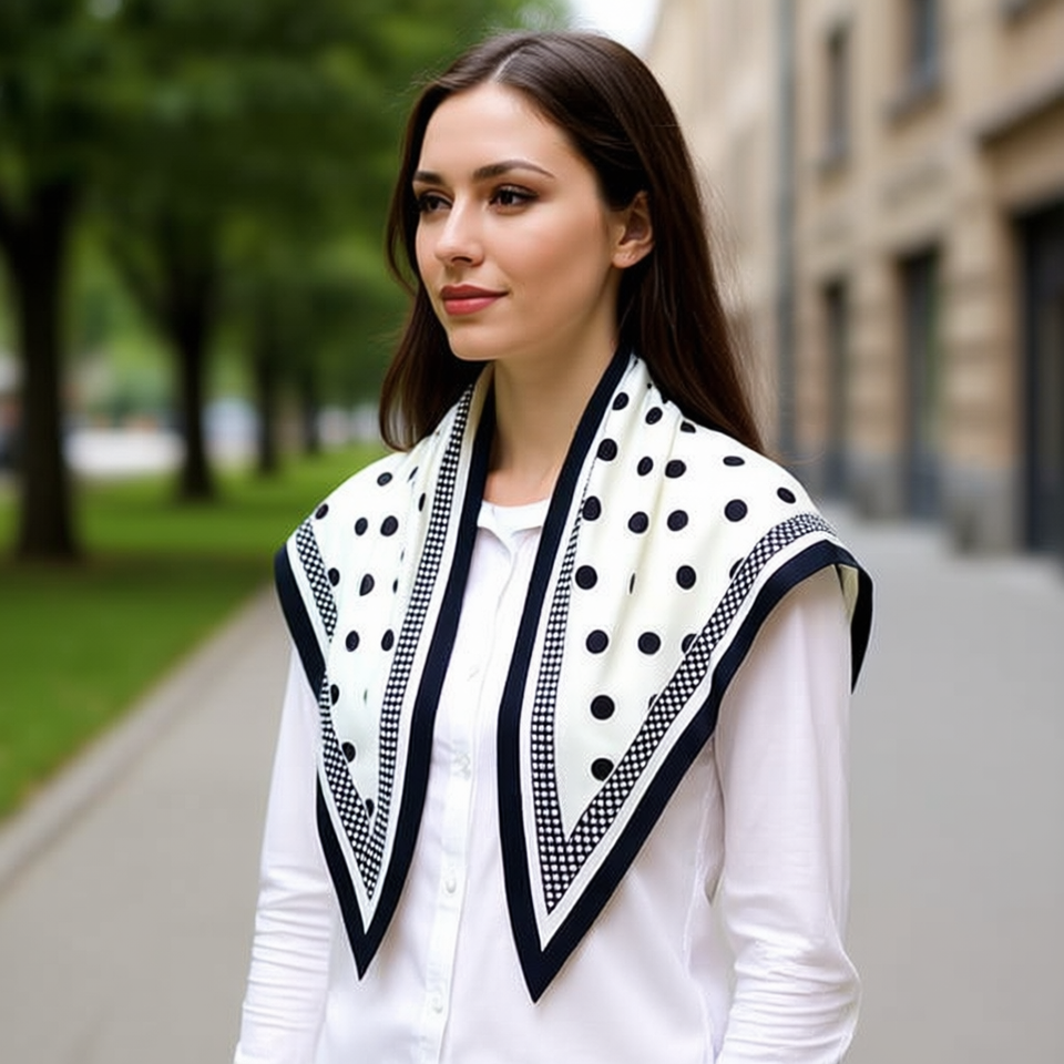 Sciarpa triangolare Ziye 135x60 cm con pois, accessorio multifunzionale per il collo da donna, per tutte le stagioni, in poliestere e cotone