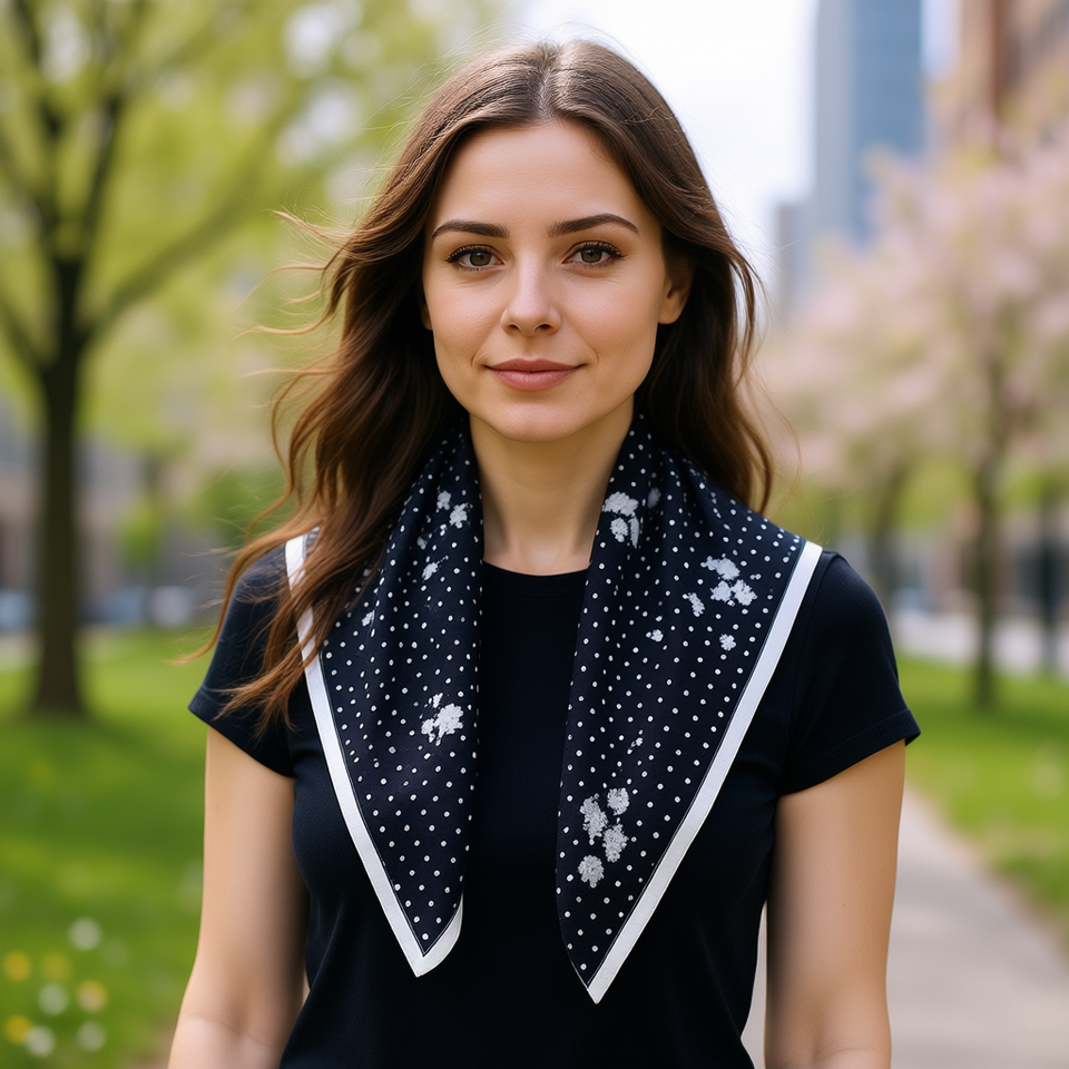 Ziyou Triangular Scarf 135x60cm Polka Dot Neckwear For Women All Seasons Polyester Cotton