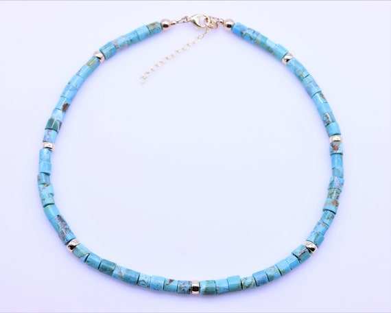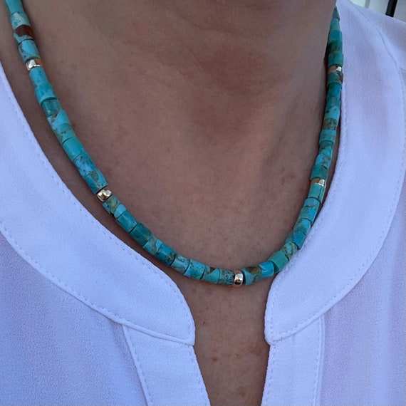 Zooying Genuine Natural Kingman Turquoise Beaded Necklace Heishi Choker Gemstone Necklace for Women Sequential Prophet