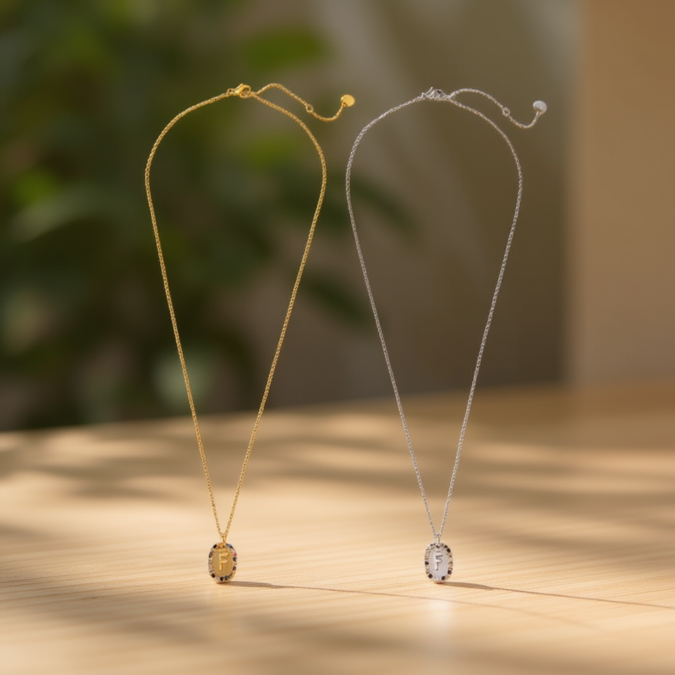 F Pendant Necklace Gold Silver Stainless Steel Minimalist Letter Charm Everyday Wearing