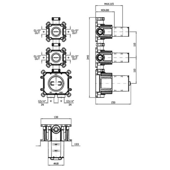 Zucchetti Isy22 Matt Black-Noir Doré Shower Mixer Elegant Shower Room Accessory