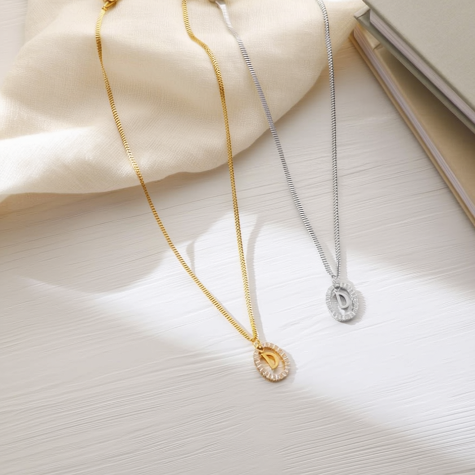 Zyra Letter D Pendant Necklace 10x15Cm Snake Chain Minimalist Fashion Jewelry Stainless Steel Gold Silver
