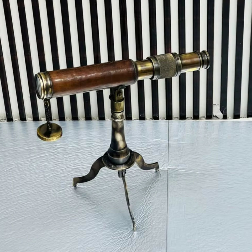 Telescopio in ottone antico di alta qualità con supporto in ottone e finitura in pelle intorno al tubo in vendita da parte degli esportatori