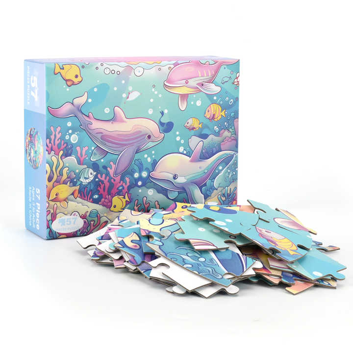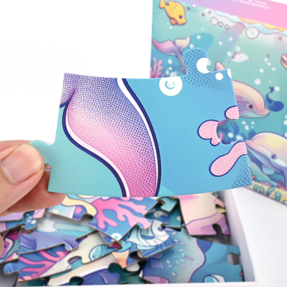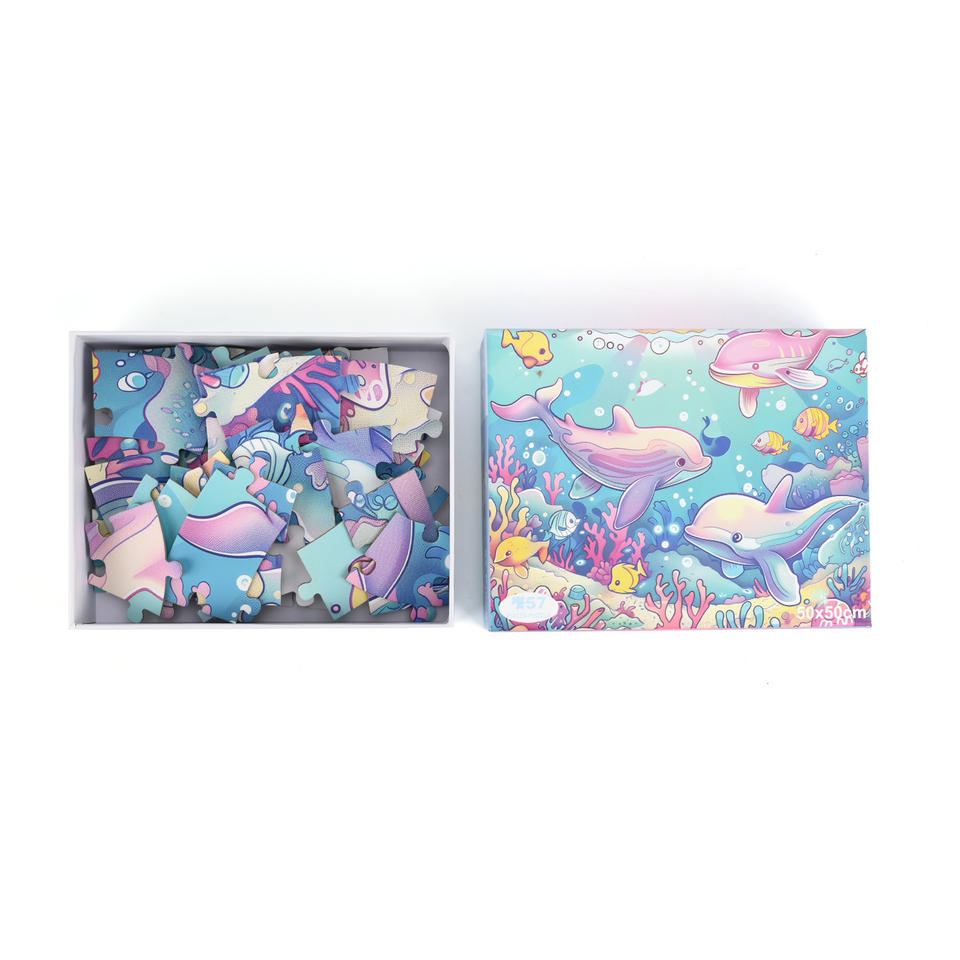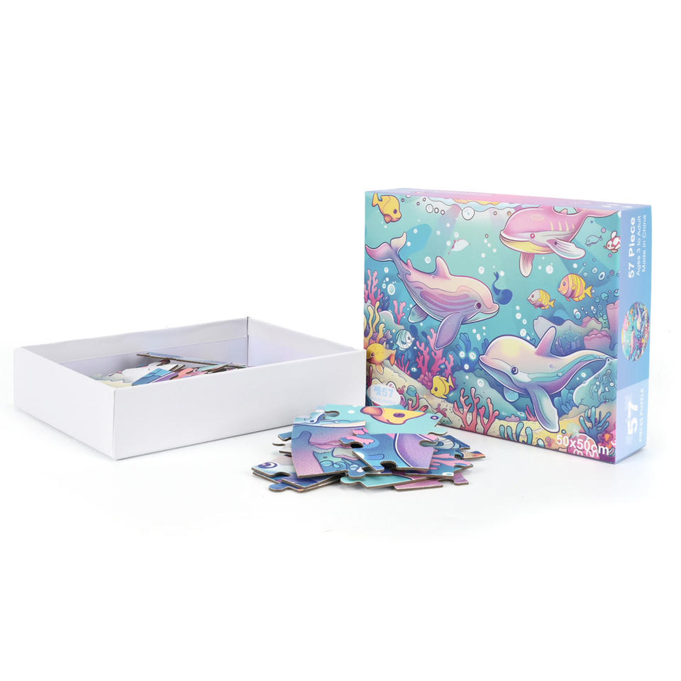 Puzzle con stampa personalizzata all'ingrosso cartone animato cartone animato mondo subacqueo delfino pavimento rotondo Puzzle