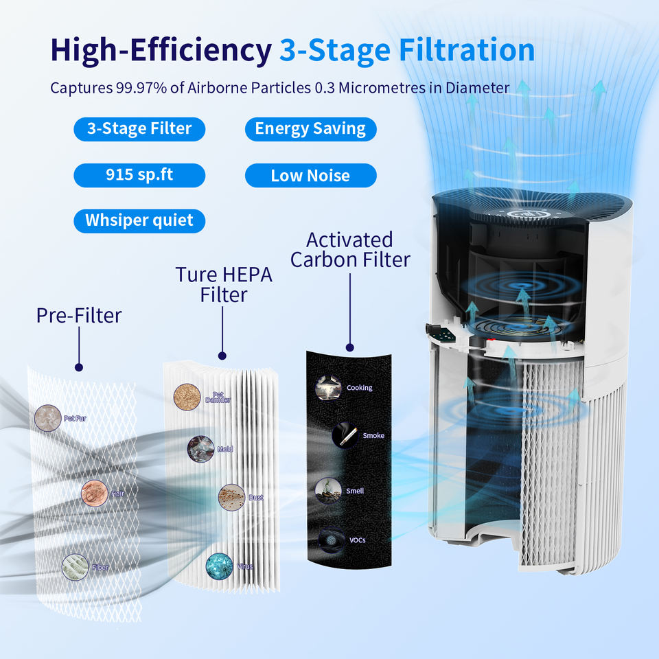 High Efficiency, Compact Design, HEPA Filter, Activated Carbon Filter, Sleep Mode, Smart Sensors