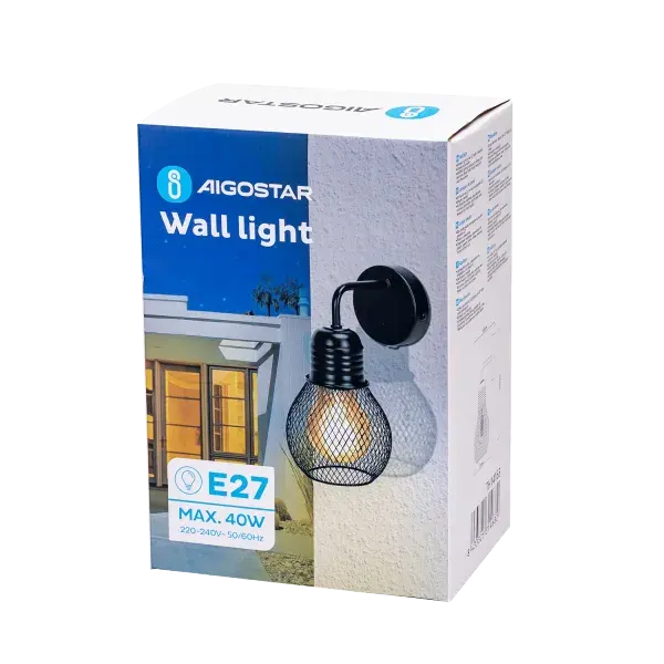 aplique metlico negro e27, sin fuente de luz, ideal para decoracin y ambientacin en hogares y oficinas.