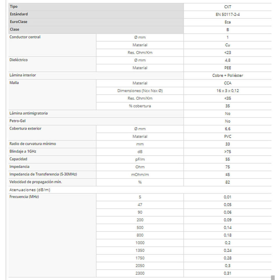 bobina coaxial de cobre dca 214210 para seal de televisin, conductividad y resistencia, ideal para instalaciones de tv y