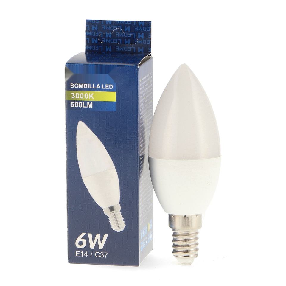 bombilla led 6w c37 e14 3000k, luz clida y eficiente, ideal para iluminacin decorativa y ambientes acogedores.