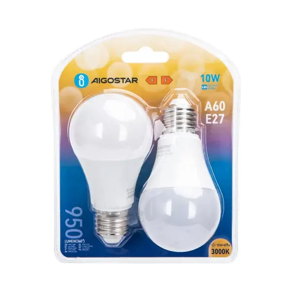 bombilla led a60 e27 10w, paquete de 2 piezas, eficiencia, larga duracin, ideal para iluminacin domstica y ahorro energtico.