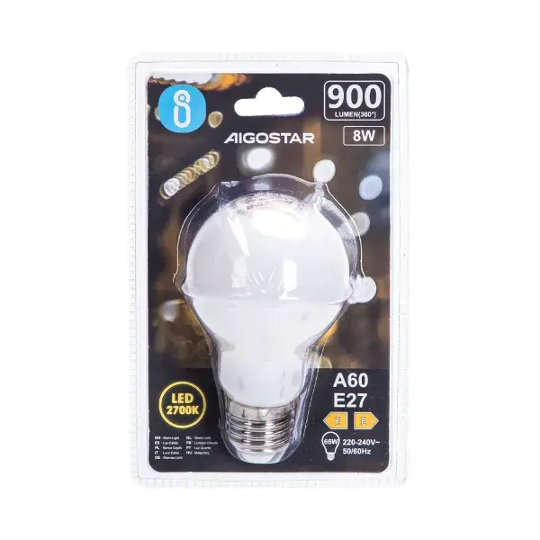 Lampadina LED A60 E27 8W - Bianco Latte, Efficiente, Ecologica; Ideale per Illuminazione Calda in Casa e Spazi di Lavoro.