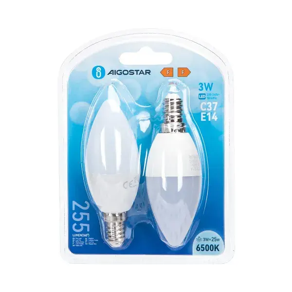 bombilla led c37 e14 3w, 2 unidades, eficiente, bajo consumo, larga duracin, ideal para iluminacin ambiental y decoracin.