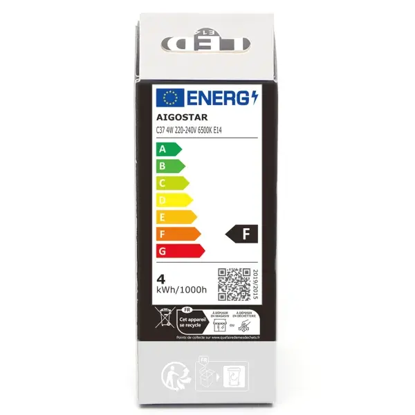 bombilla led c37 e14 4w 6500k - eficiencia energtica, luz blanca fra, ideal para iluminacin domstica y comercial.