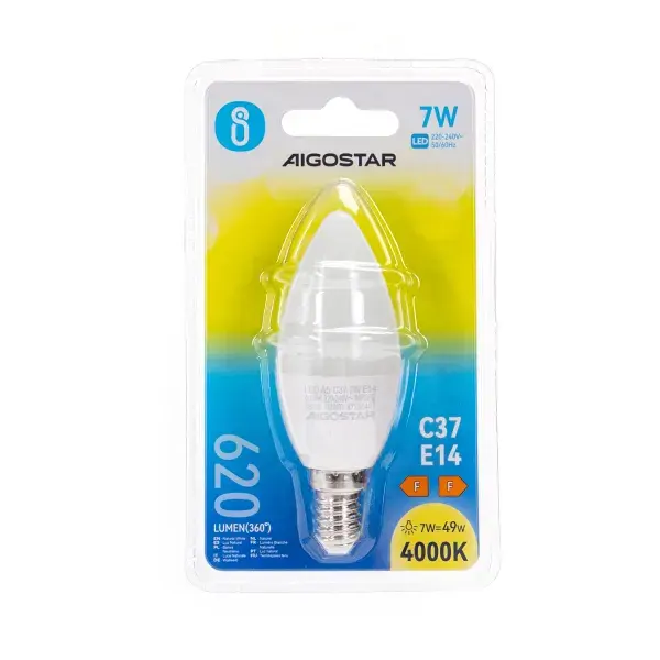 bombilla led c37 e14 7w, luz clida, excelente eficiencia energtica, ideal para decoracin y ambientes acogedores.