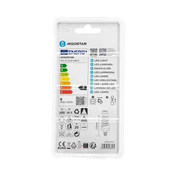 bombilla led e27 9w espiral, eficiencia energtica, luz clida, ideal para iluminacin domstica y ambiental.
