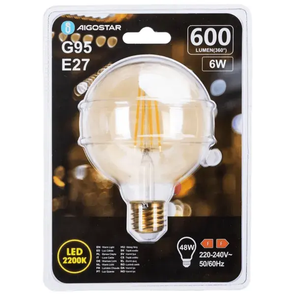 bombilla led filamento g95 e27 6w mbar - eficiencia energtica, luz clida, ideal para decoracin y ambientes acogedores.