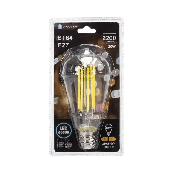 bombilla led filamento st64 e27 20w, eficiencia, luz clida, ideal para decoracin y ambientacin en hogares o negocios.