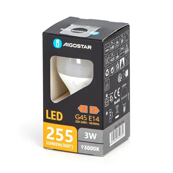 bombilla led g45 e14 3w 3000k - eficiencia energtica, luz clida, ideal para iluminacin de ambientes y decoracin.