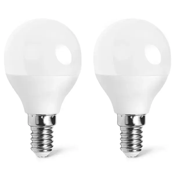 Lampadina LED G45 E14 4W, 2 pezzi, a risparmio energetico, luce calda, ideale per lampade decorative e da tavolo.