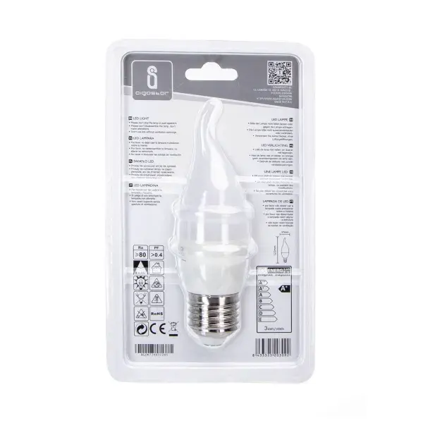 Lampadina LED a candela E27 3W, luce calda, a basso consumo, ideale per decorazione e ambienti accoglienti.