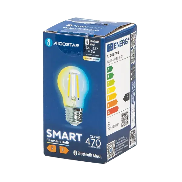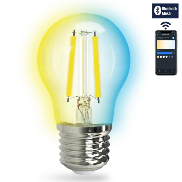 bombilla smart g45 4.5w cct con conectividad bluetooth mesh, ideal para iluminacin regulable y control a distancia.