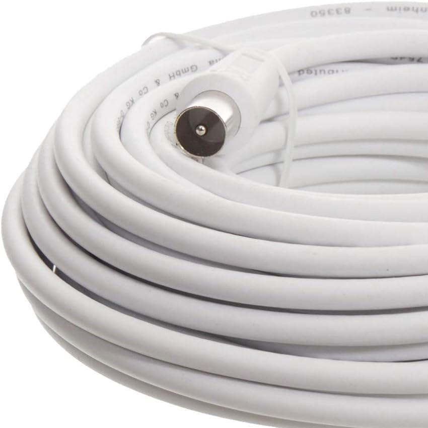 cable de tv blanco de 10 m, resistencia y flexibilidad, ideal para conectar dispositivos audiovisuales y transmitir seales de