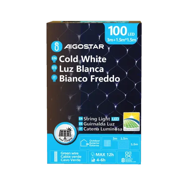 Catena di luci solari piatte, luce bianca fredda, + 1,5m x 1,5m, ideale per decorare esterni e creare atmosfere calde e accoglienti