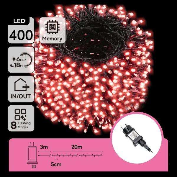 Catene di luci LED a bassa tensione, 400 LED, 3m+20m, distanze di 5cm, filo verde e nero, effetto lampeggiante e