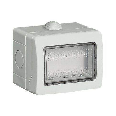 caja estanca ip55 de 3 mdulos, resistente al agua y polvo, ideal para proteger conexiones elctricas y dispositivos en