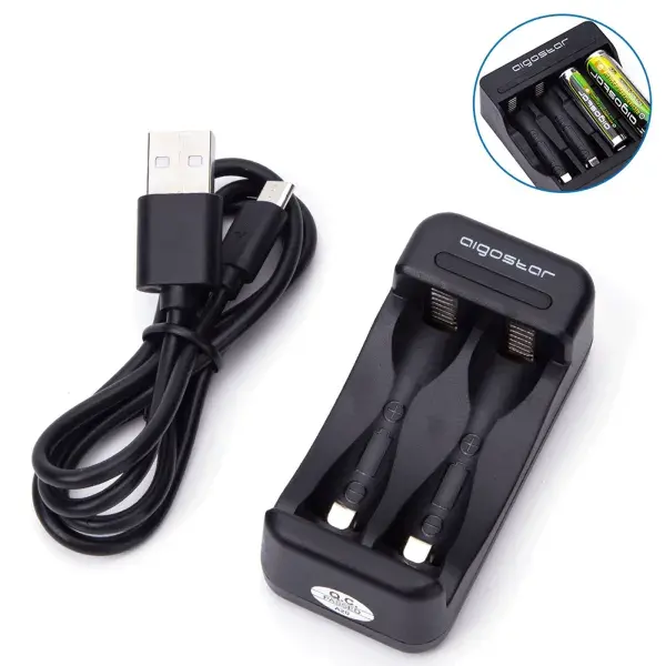 Caricabatterie AA/AAA, ricarica rapida, design compatto, indicatore LED; ideale per ricaricare batterie e prolungare la loro durata.